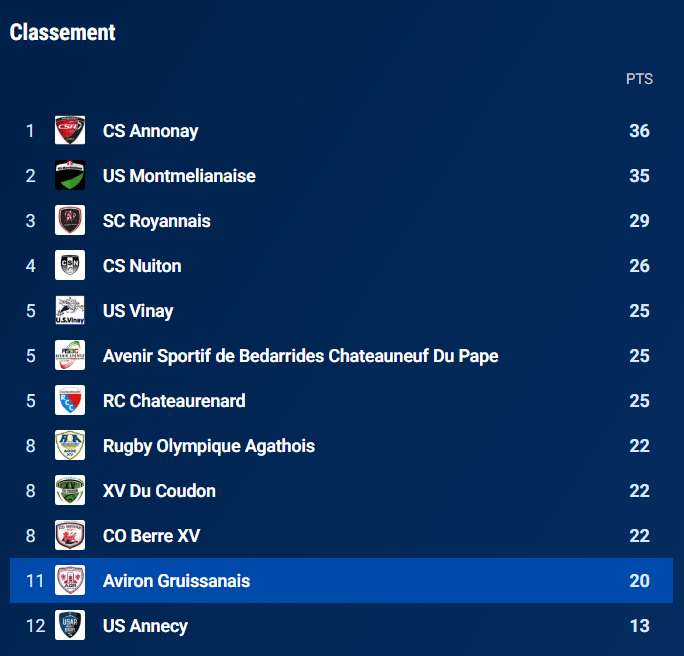 Avec 22 points, Agde se situe juste au-dessus de Gruissan.