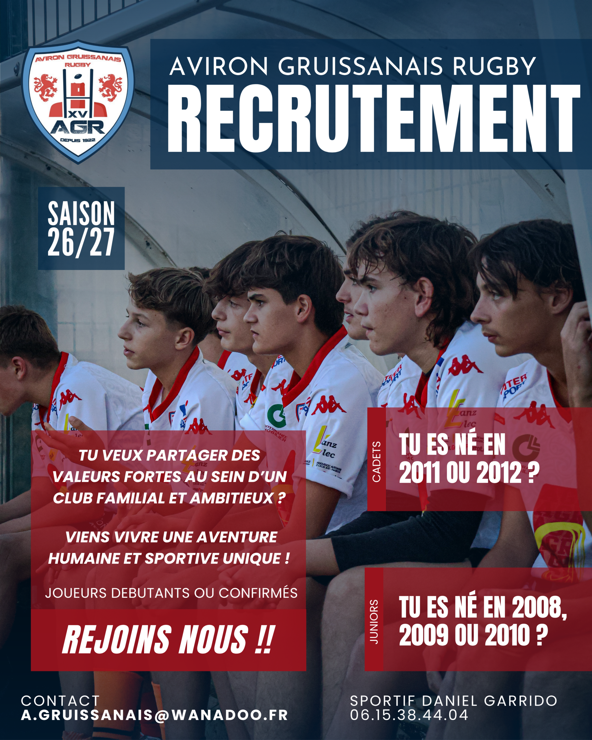 L’Aviron Gruissanais Rugby ouvre officiellement ses portes pour le recrutement de ses futures pépites en catégories Cadets et Juniors.